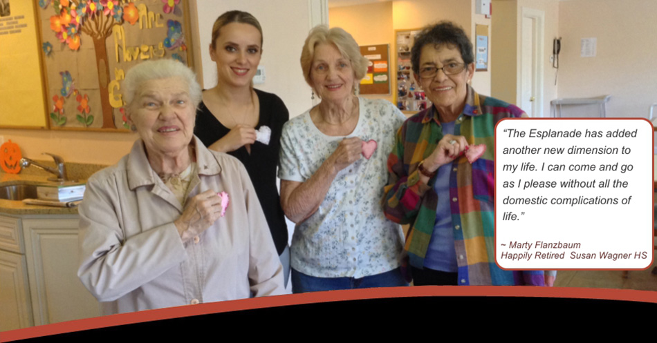 For more than fifty years, the Scharf Family's Esplanade Luxury Senior Residences have consistently delivered an exceptional level of quality care and support that their residents deserve, and that the Esplanade has become known for. Motivated by a deep-rooted tradition of respect for the elderly, the Esplanade is committed to cultivating a safe, secure environment that fosters dignity for each and every resident in a warm, home-like setting.